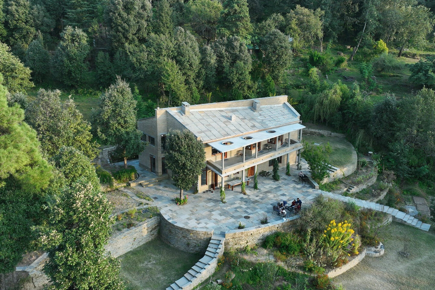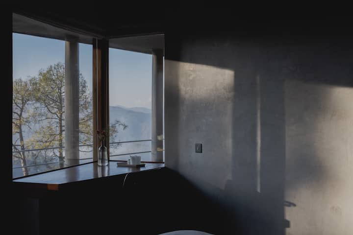 Designed by Swedish architect Inger Thede, this is a quiet home on a hilltop in the presence of tall Himalayan peaks. For a part of the year, it serves as a private retreat for travellers who value thoughtful design, meaningful experiences and the rare luxury of stillness. Four thoughtfully designed bedrooms, forest-framed verandahs, a sauna, a study lounge, and a kitchen built for shared meals and long conversations invite you to tune into your inner space.
